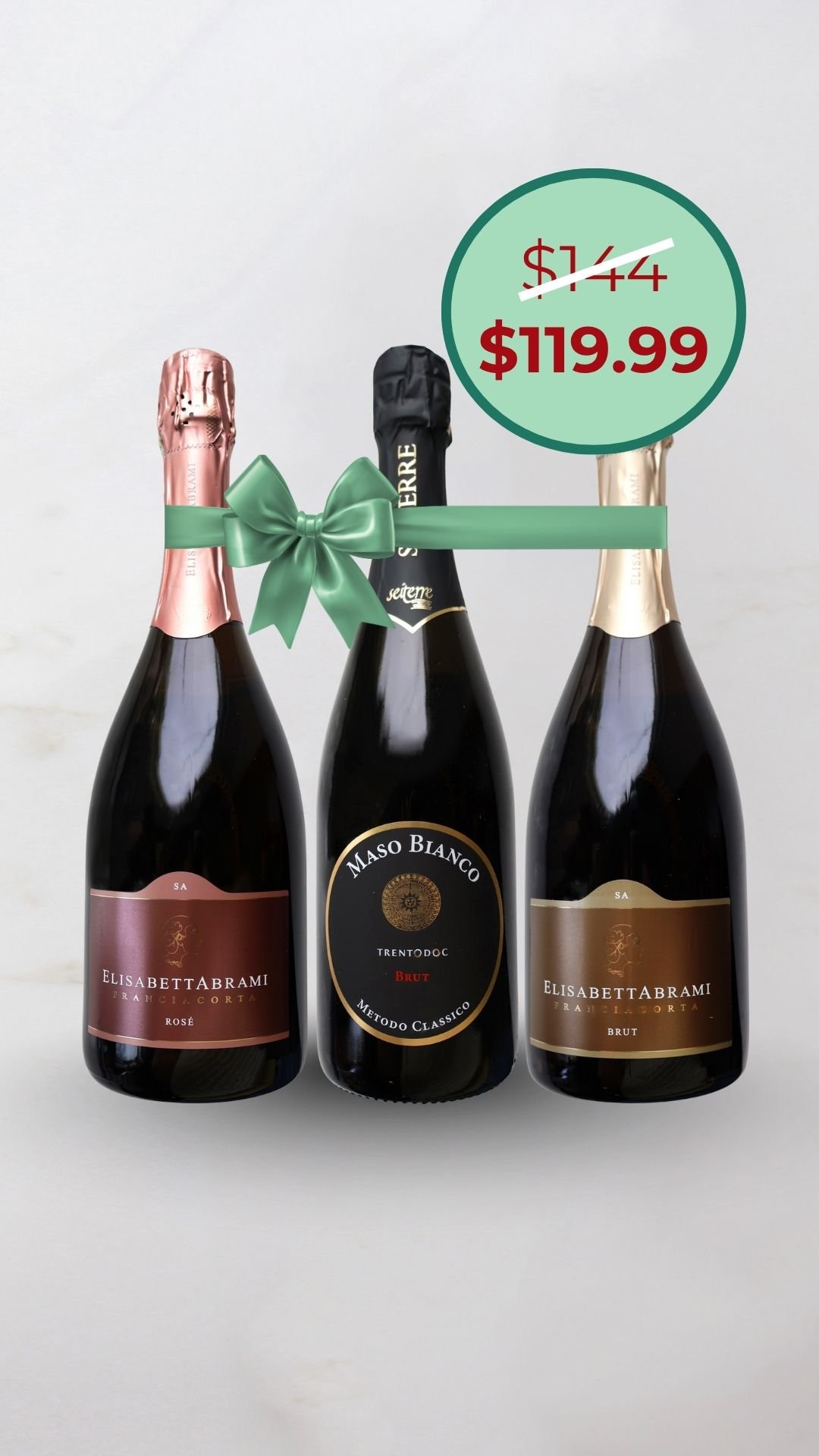 This exclusive trio unites the elegance of Elisabetta Abrami’s Franciacorta crafted with artisanal precision in the heart of Lombardy, with the purity of the Italian Alps with Trento DOC Maso Bianco by Seiterre, offering a refined journey through Italy’s finest méthode champenoise interpretations. |