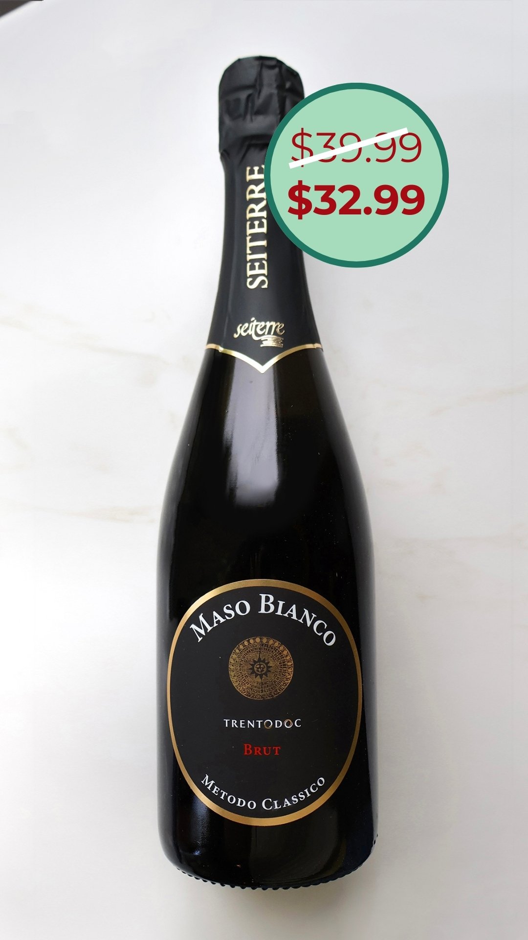 Discover Italy’s mountain-born answer to Champagne. This month’s Privè DiVino selection brings you a stunning Metodo Classico Brut from Trentino, produced by Seiterre, a family-run winery with roots dating back to 1877. Crafted exclusively from Chardonnay grown on high-altitude basaltic soils in the Vallagarina valley, this Trento DOC sparkler is aged in bottle with secondary fermentation for a refined, elegant, and persistently fresh expression of Alpine terroir.